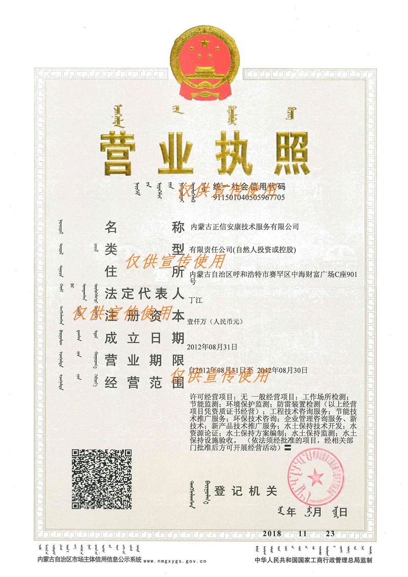 內(nèi)蒙古正信安康技術(shù)服務(wù)有限公司成立于2012年7月,注冊(cè)資金1000萬(wàn)元。多年來(lái),公司及其子公司本著“以技術(shù)為立命之本,以服務(wù)為發(fā)展遵旨”的前提下,專(zhuān)業(yè)從事“職業(yè)衛(wèi)生、節(jié)能與低碳、水土保持、環(huán)保、安全”五大類(lèi)業(yè)務(wù)。其中內(nèi)蒙古正信安康技術(shù)服務(wù)...    [詳細(xì)]