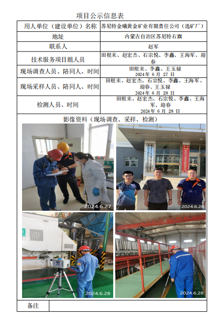 蘇尼特金曦黃金礦業(yè)有限責任公司(選礦廠(chǎng))職業(yè)病危害因素定期檢測
