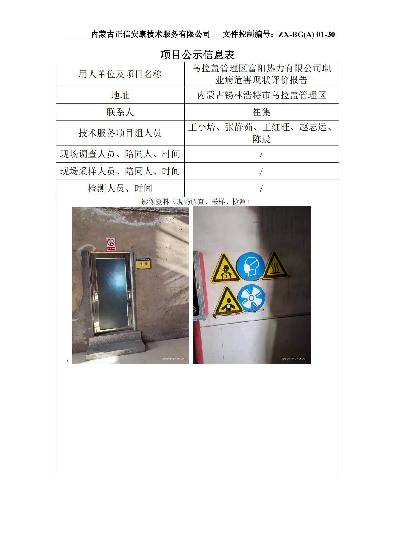 烏拉蓋管理區富陽(yáng)熱力有限公司職業(yè)病危害現狀評價(jià)