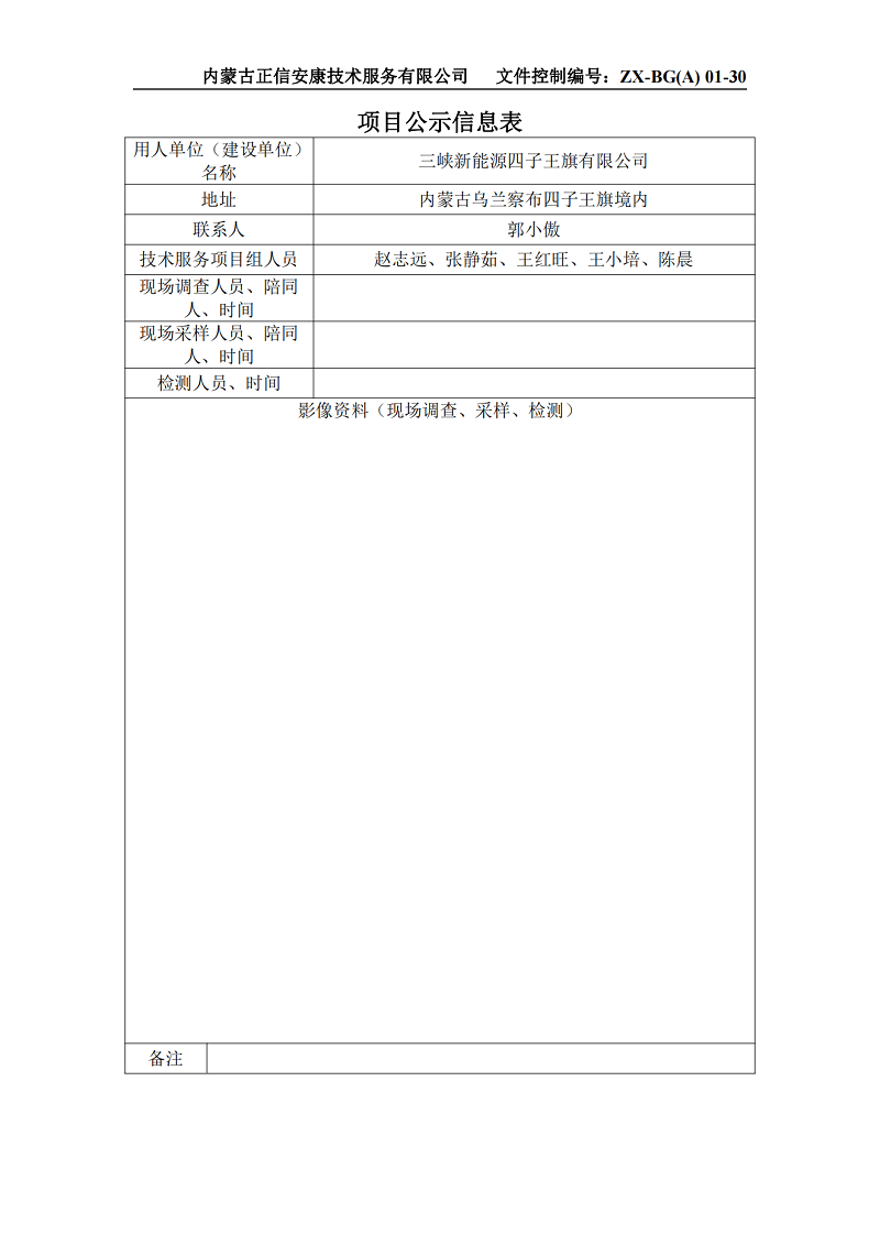 三峽烏蘭察布新一代電網(wǎng)友好綠色電站示范項目(一期)職業(yè)病危害預評價(jià)報告項目公示信息表