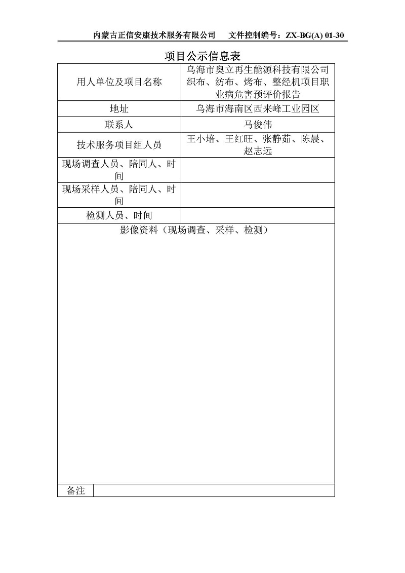 烏海市奧立再生能源科技有限公司織布、紡布、烤布、整經(jīng)機項目 預評