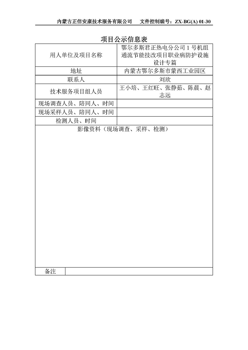 鄂爾多斯君正熱電分公司1號機組通流節能技改項目職業(yè)病防護設施設計專(zhuān)篇項目公示