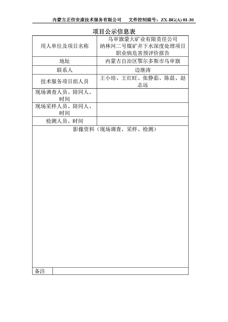 烏審旗蒙大礦業(yè)有限責任公司納林河二號煤礦井下水深度處理項目職業(yè)病危害預評價(jià)報告