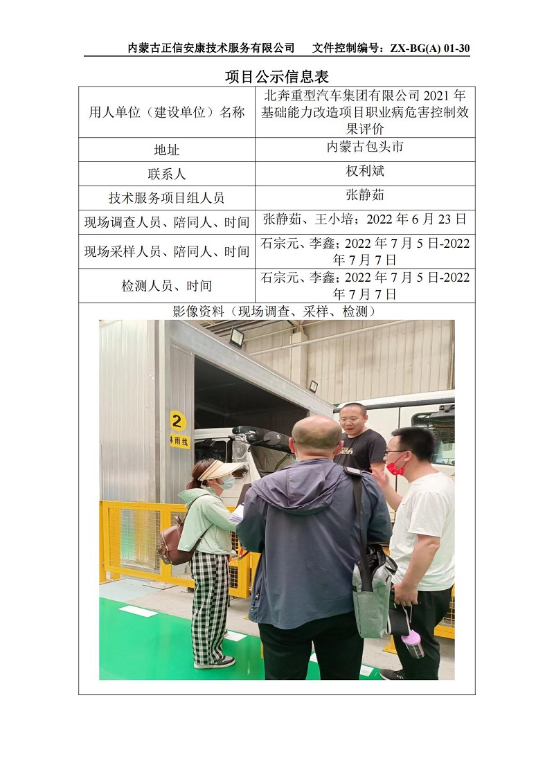 北奔重型汽車(chē)集團有限公司2021年基礎能力改造項目職業(yè)病危害控制效果評價(jià)