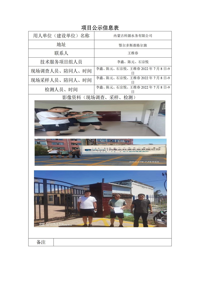 內蒙古科源水務(wù)有限公司定期檢測項目公示