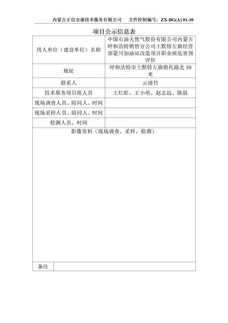 中石油蒙川加油站預評項目公示信息表