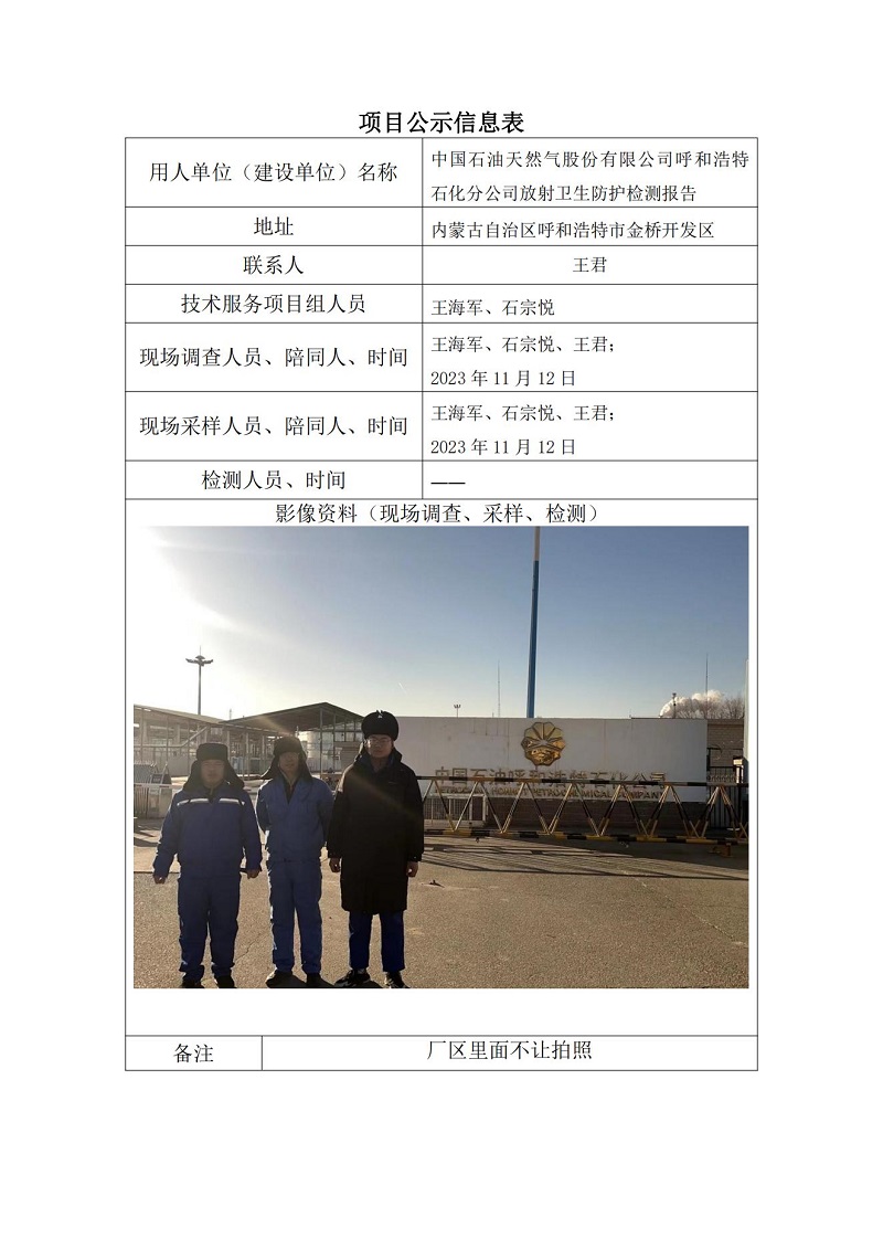 中國石油天然氣股份有限公司呼和浩特石化分公司放射衛生防護檢測報告