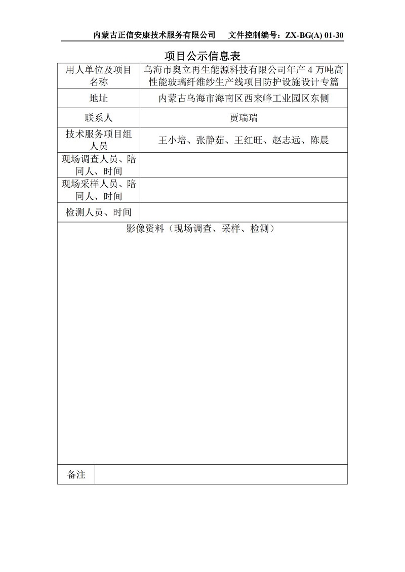 烏海市奧立再生能源科技有限公司年產(chǎn)4萬(wàn)噸高性能玻璃纖維紗生產(chǎn)線(xiàn)設計專(zhuān)篇項目公示信息表
