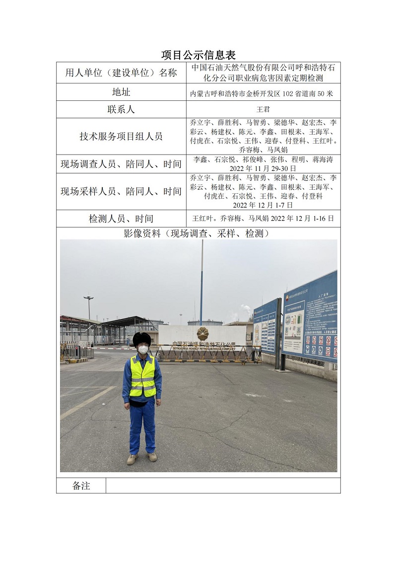中國石油天然氣股份有限公司呼和浩特石化分公司職業(yè)病危害因數定期檢測信息公示