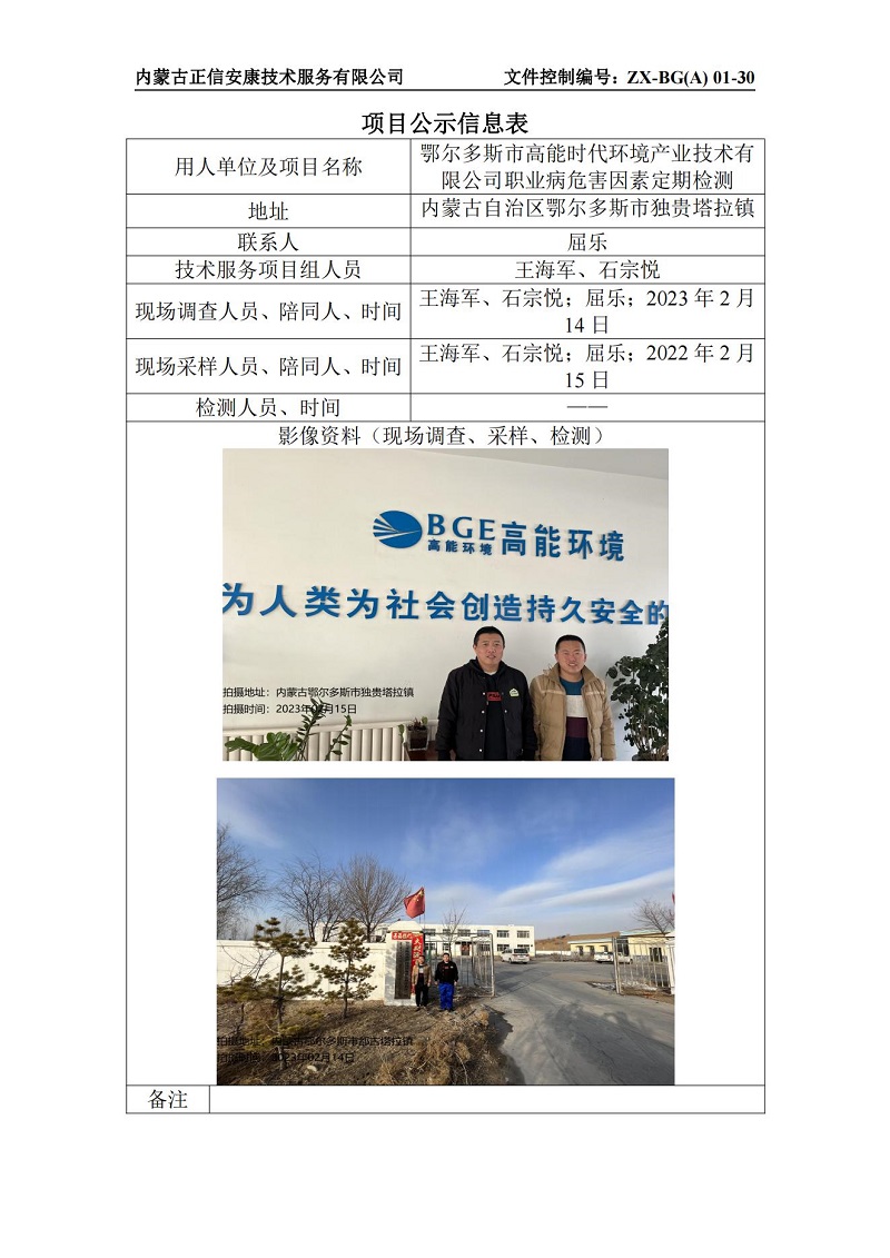 鄂爾多斯市高能時(shí)代環(huán)境產(chǎn)業(yè)技術(shù)有限公司職業(yè)病危害因素定期檢測項目公示