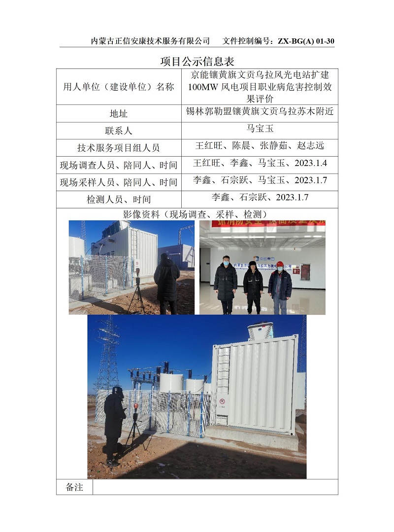 京能鑲黃旗文貢烏拉風(fēng)光電站擴建100MW風(fēng)電項目控評公示信息表