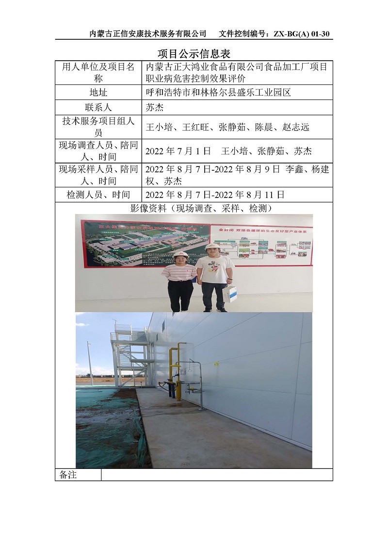 內蒙古正大鴻業(yè)食品有限公司食品加工廠(chǎng)項目職業(yè)病危害控制效果評價(jià)