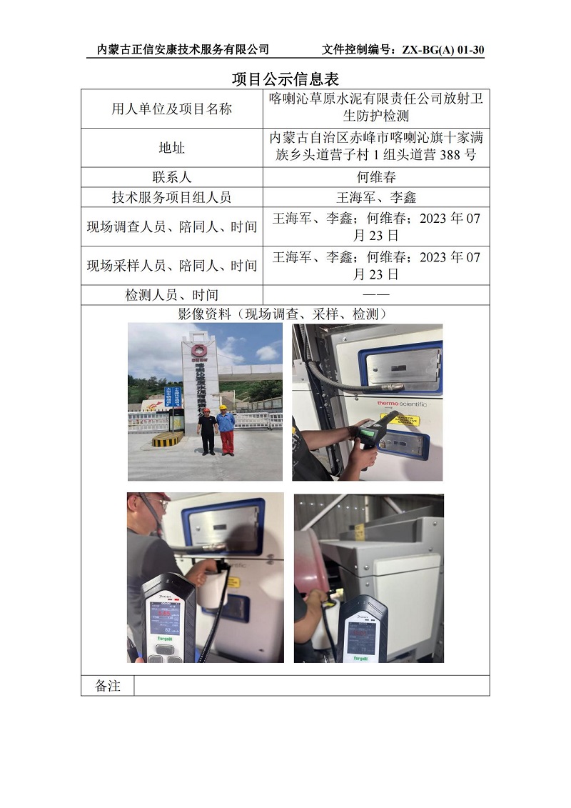 喀喇沁草原水泥有限責任公司放射衛生防護檢測_