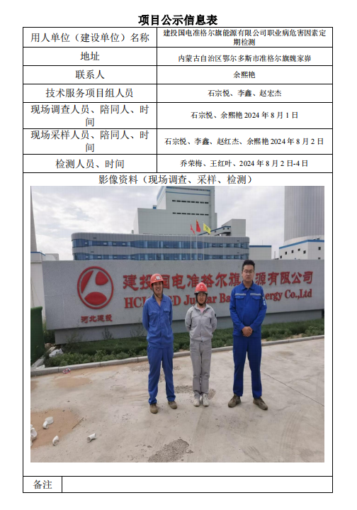 建投國電準格爾旗能源有限公司職業(yè)病危害因素定期檢測
