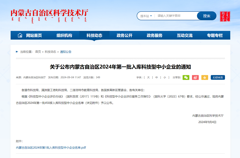 熱烈祝賀公司成功申報內蒙古自治區2024年第一批入庫科技型中小企業(yè)