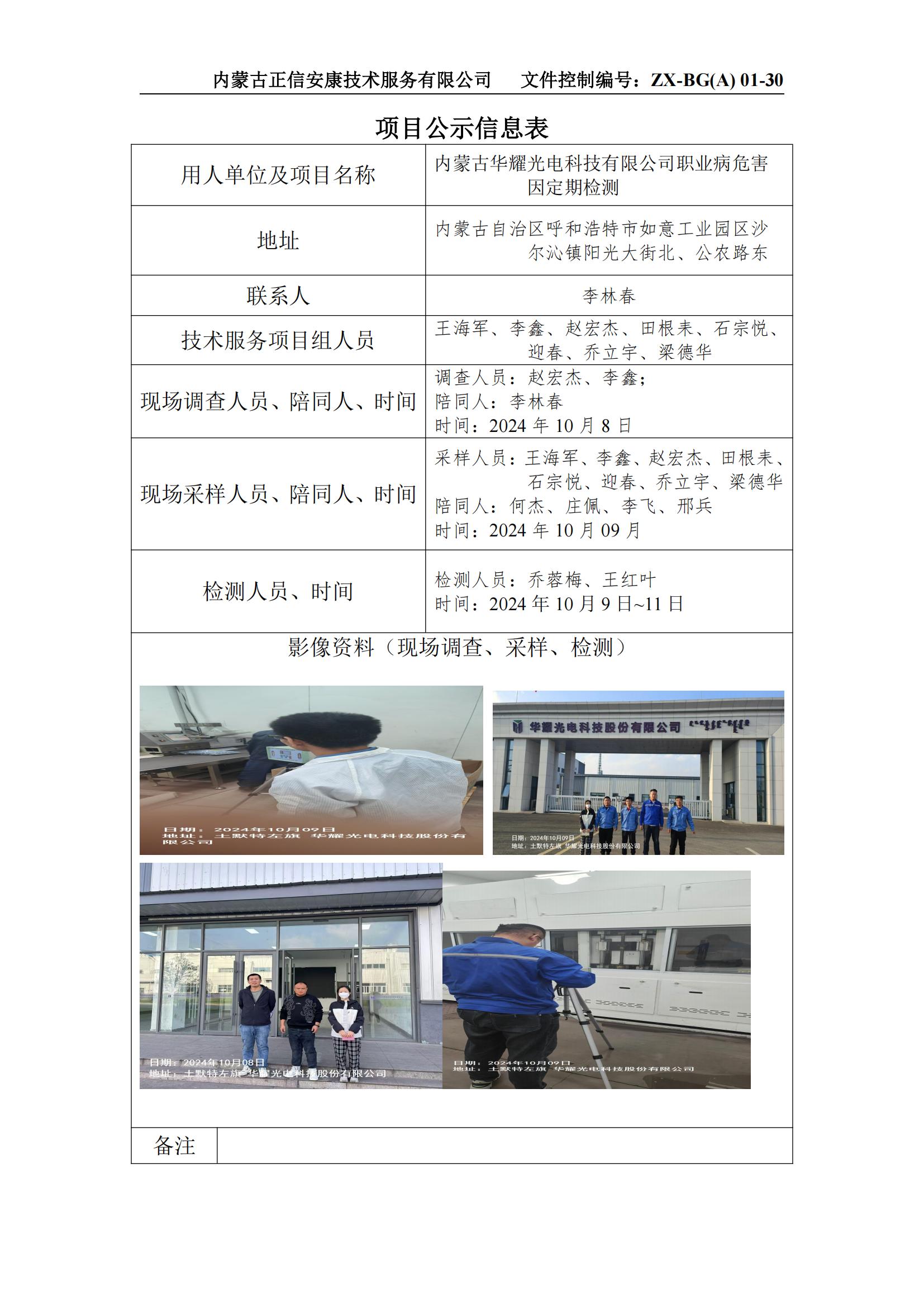 內蒙古華耀光電科技有限公司職業(yè)病危害因定期檢測