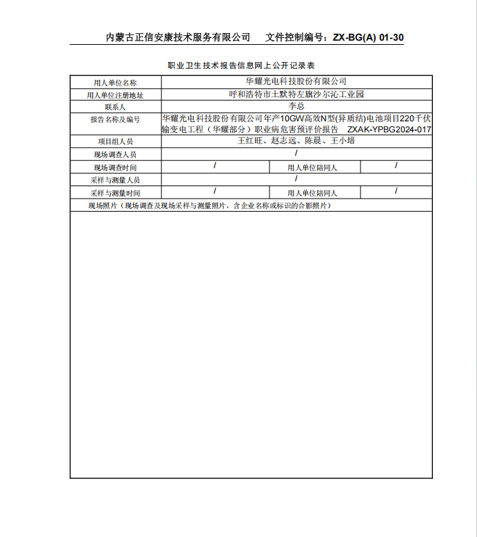 華耀光電科技股份有限公司年產(chǎn)10GW高效N型(異質(zhì)結)電池項目220千伏 輸變電工程(華耀部分)職業(yè)病危害預評價(jià)報告