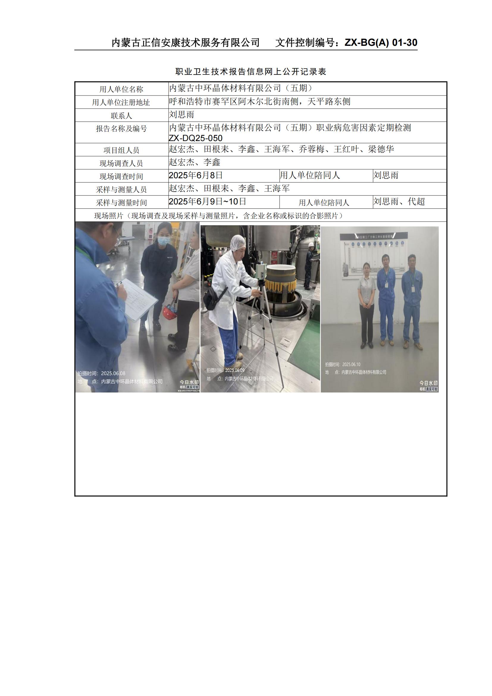 內蒙古中環(huán)晶體材料有限公司(五期)職業(yè)病危害因素定期檢測