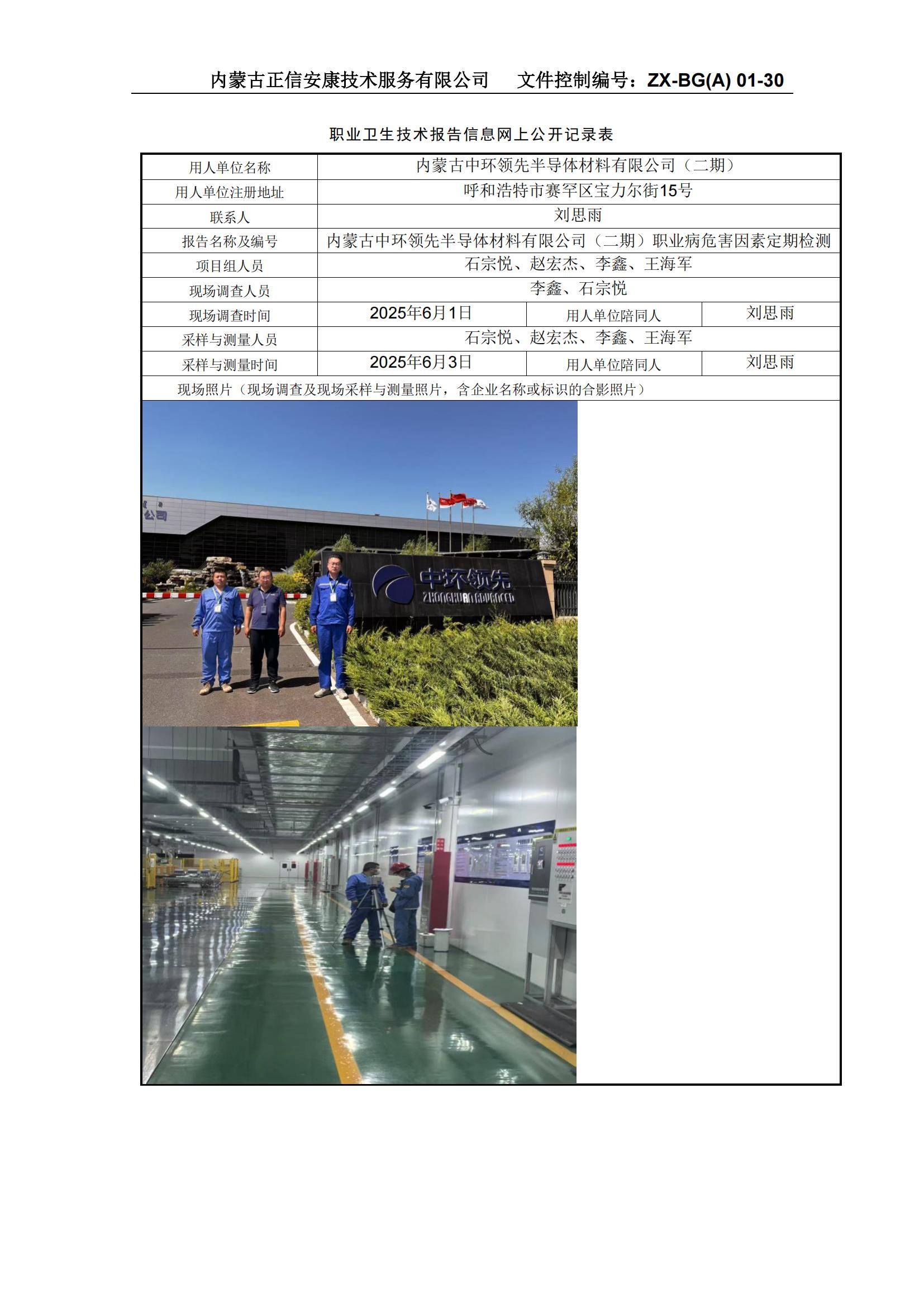 內蒙古中環(huán)領(lǐng)先半導體材料有限公司(二期)職業(yè)病危害因素定期檢測