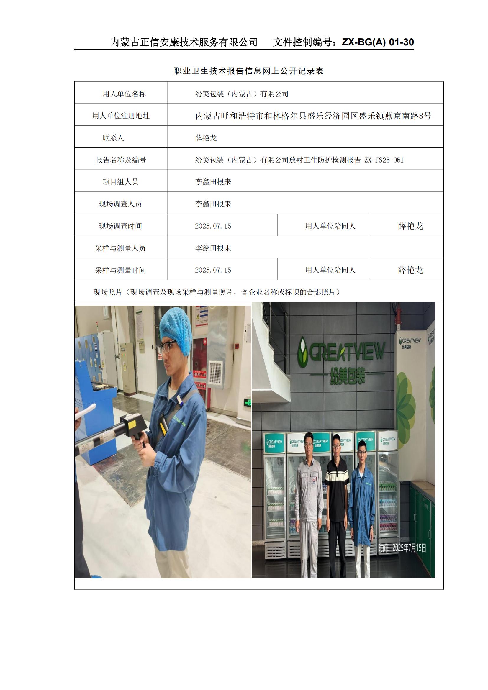 紛美包裝(內蒙古)有限公司放射衛生防護檢測