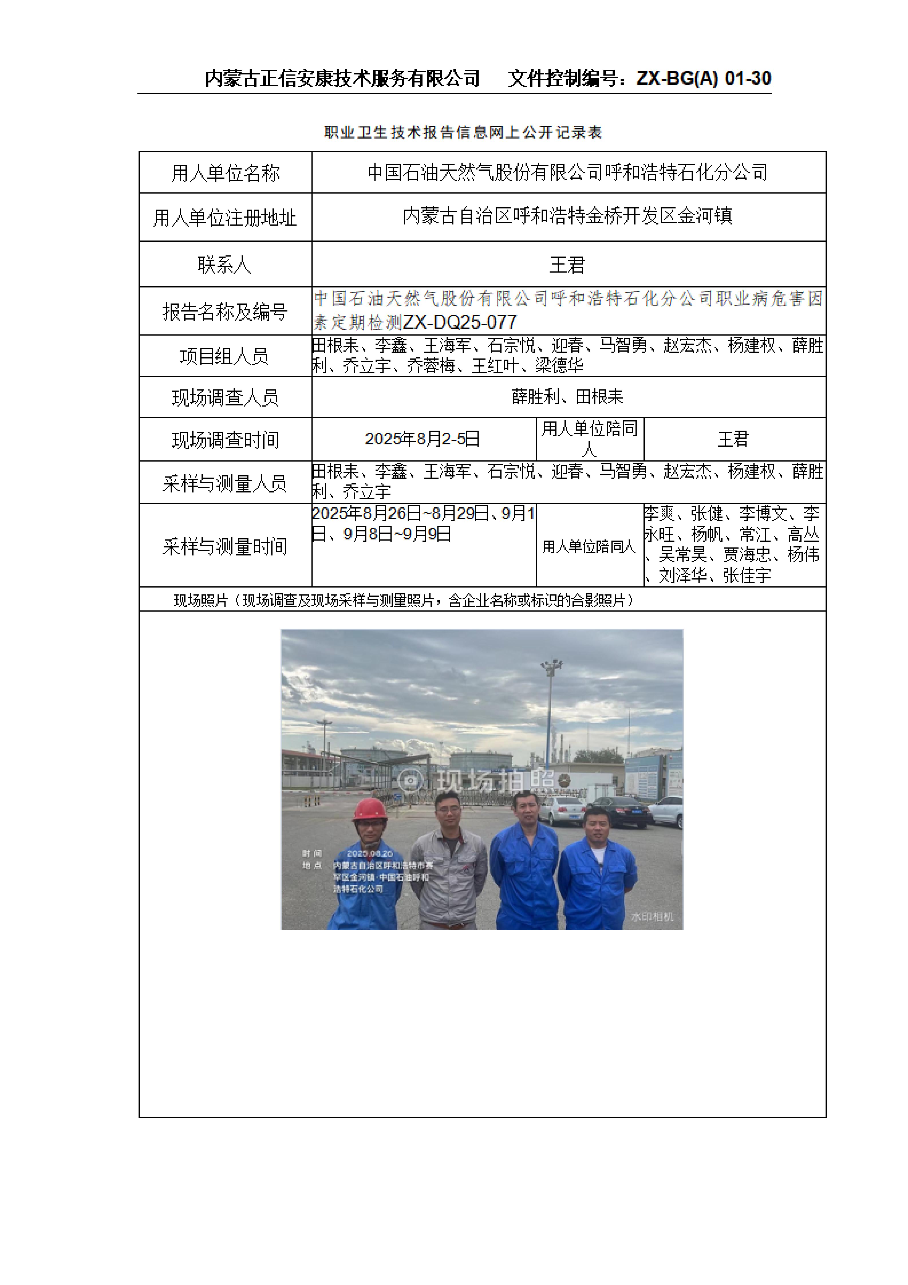 中國石油天然氣股份有限公司呼和浩特石化分公司職業(yè)病危害因素定期檢測