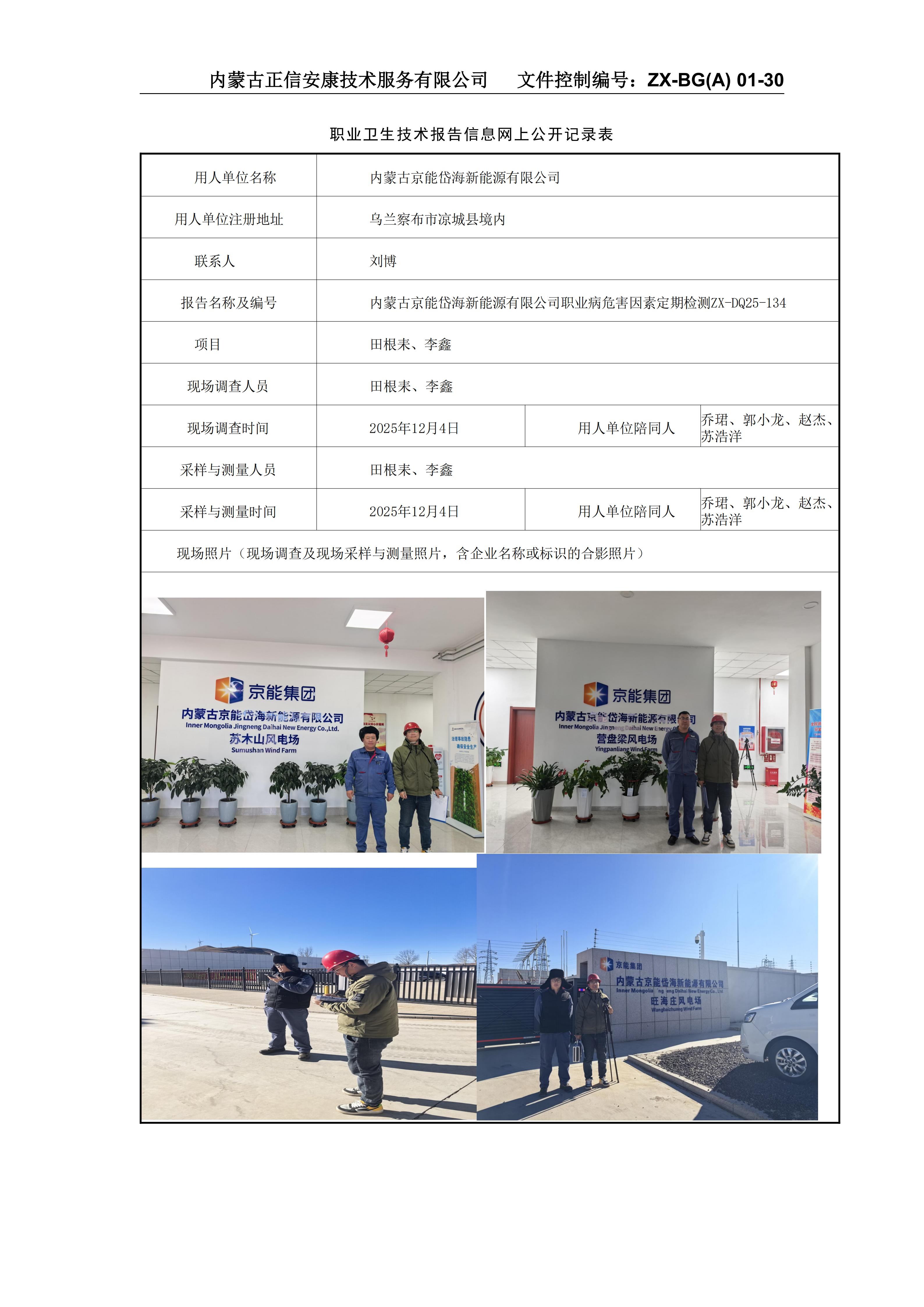 內蒙古京能岱海新能源有限公司職業(yè)病危害因素定期檢測