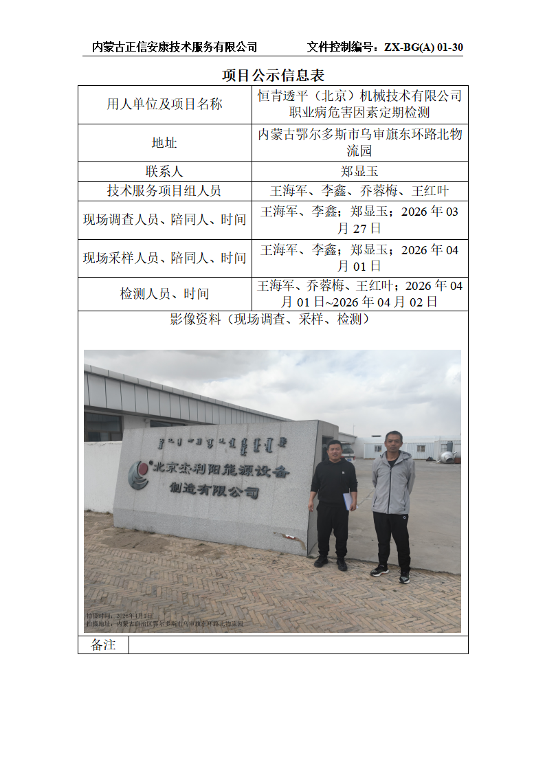 恒青透平(北京)機(jī)械技術(shù)有限公司職業(yè)病危害因素定期檢測(cè)