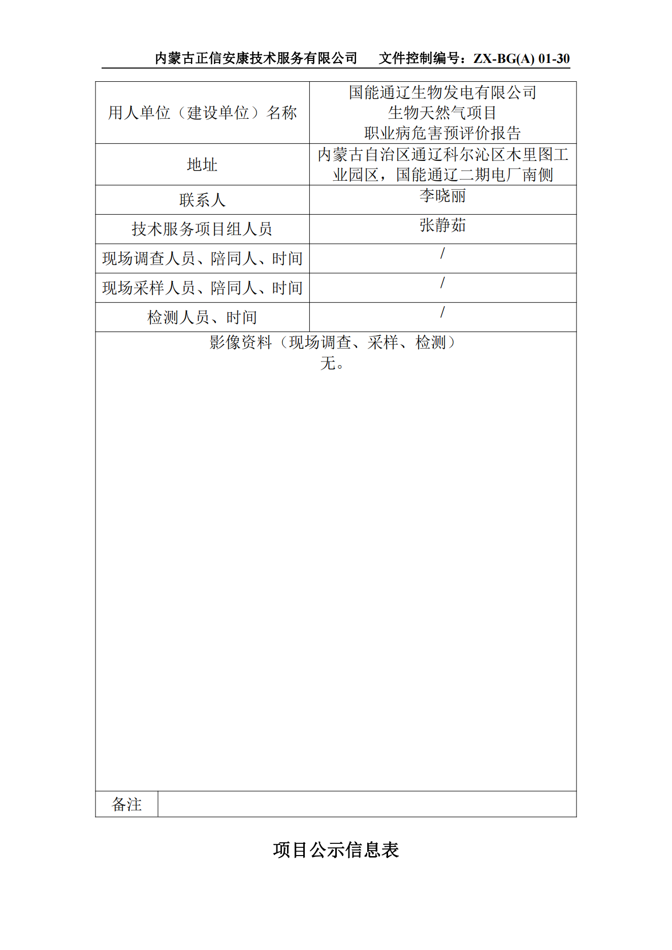 國能通遼生物發(fā)電有限公司生物天然氣項目職業(yè)病危害預評價(jià)