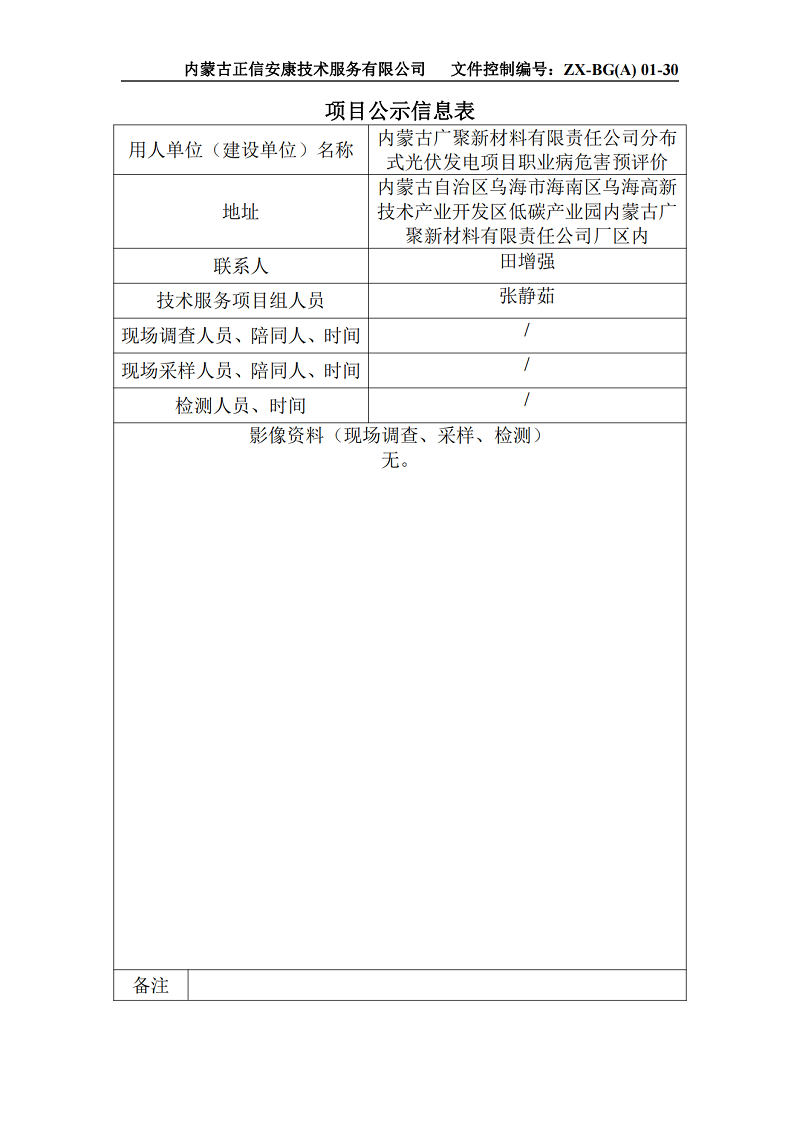 內蒙古廣聚新材料有限責任公司分布式光伏發(fā)電項目職業(yè)病危害預評價(jià)項目信息公示