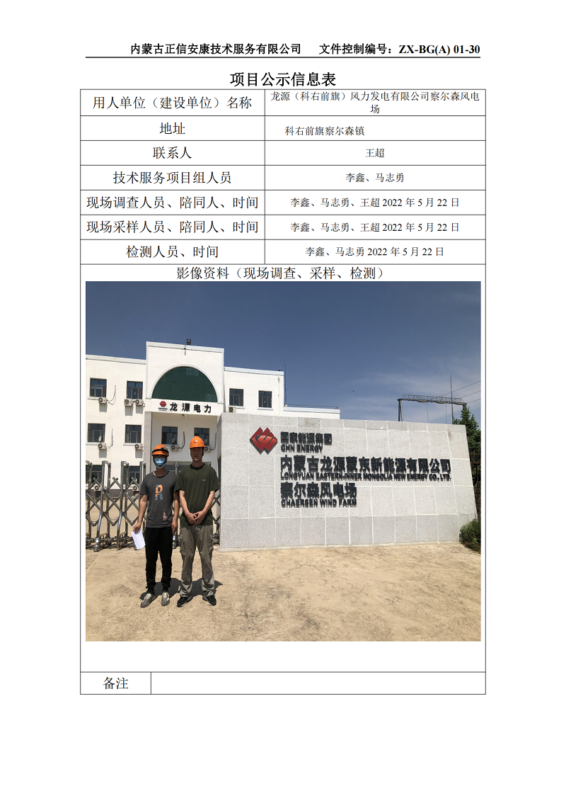 龍源(科右前旗)風(fēng)力發(fā)電有限公司察爾森風(fēng)電場(chǎng)信息公示