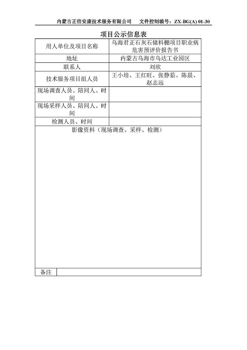 烏海君正石灰石儲料棚項目職業(yè)病危害預評價(jià)項目公示