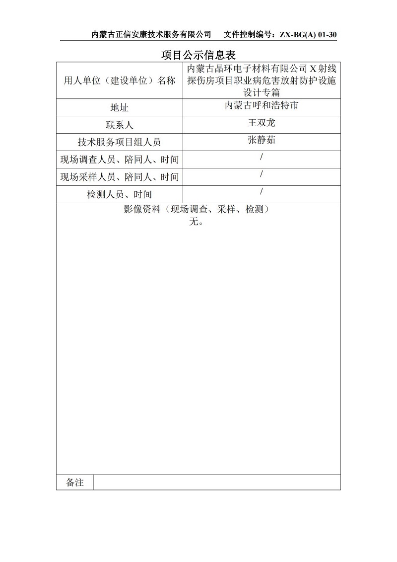 內蒙古晶環(huán)電子材料有限公司X射線(xiàn)探傷房項目職業(yè)病危害放射防護設施設計專(zhuān)篇