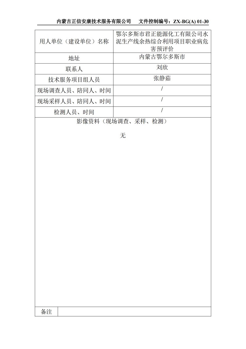 鄂爾多斯市君正能源化工有限公司水泥生產(chǎn)線(xiàn)余熱綜合利用項目職業(yè)病危害預評價(jià)