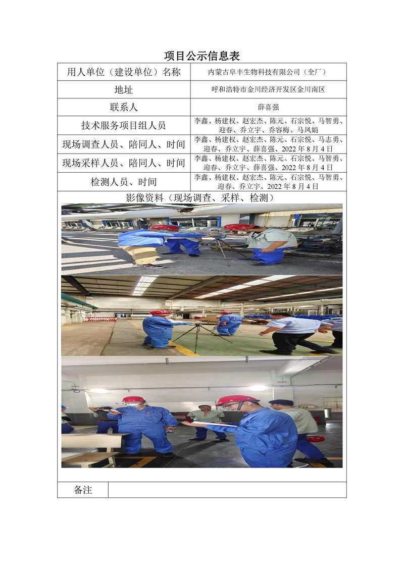 內蒙古阜豐生物科技有限公司(全廠(chǎng))定期檢測項目公示