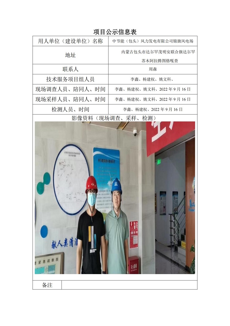 中節能(包頭)風(fēng)力發(fā)電有限公司錦旗風(fēng)電場(chǎng)定期檢測項目公示