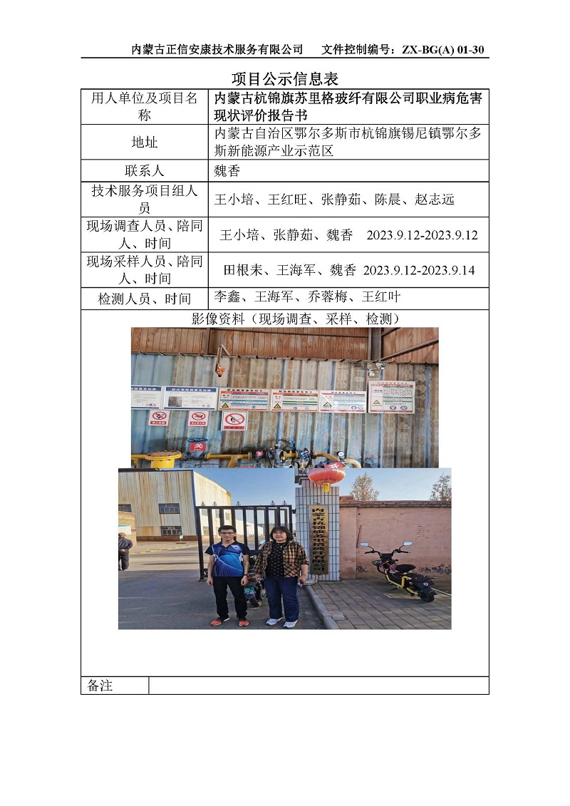 內蒙古杭錦旗蘇里格玻纖有限公司職業(yè)病危害現狀評價(jià)公示