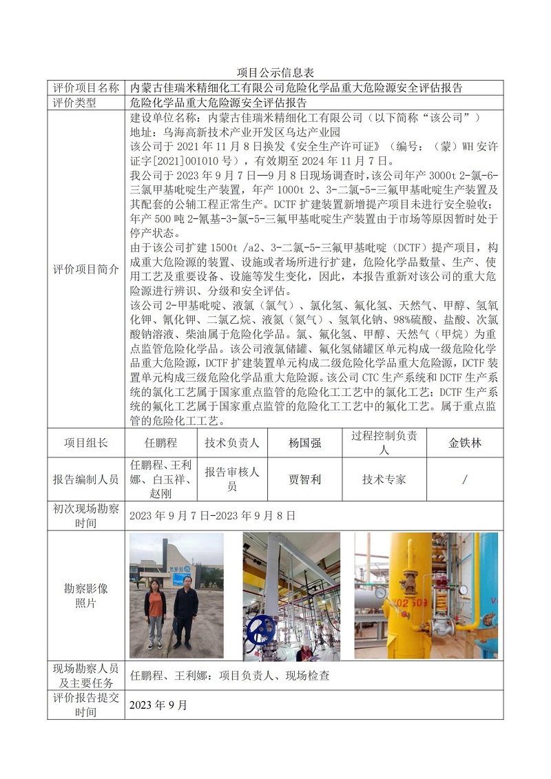 內蒙古佳瑞米精細化工有限公司危險化學(xué)品重大危險源安全評估報告