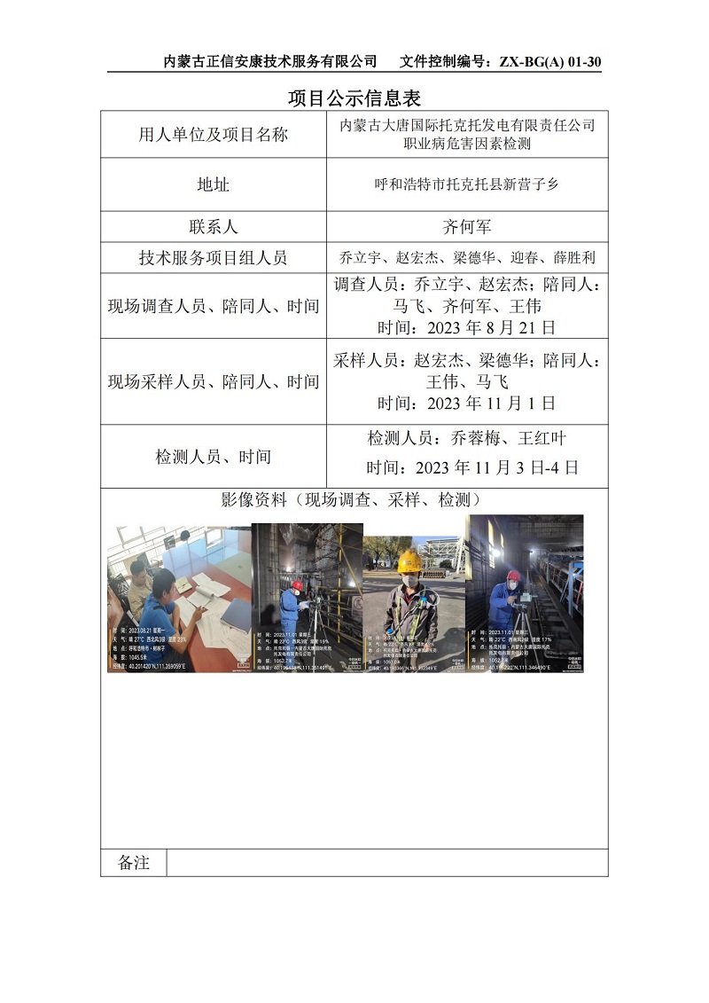 內蒙古大唐國際托克托發(fā)電有限責任公司職業(yè)病危害因素檢測項目公示信息表(1)_