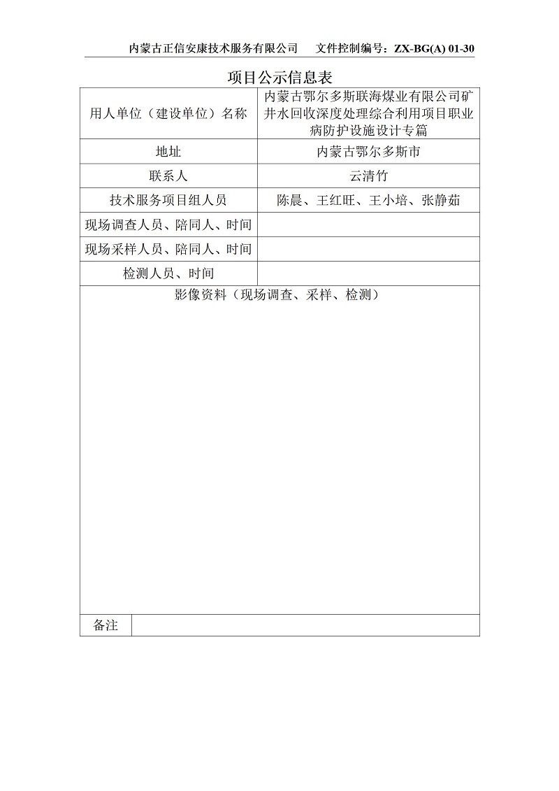 聯(lián)海煤業(yè)礦井水回收(專(zhuān)篇)項目公示信息表