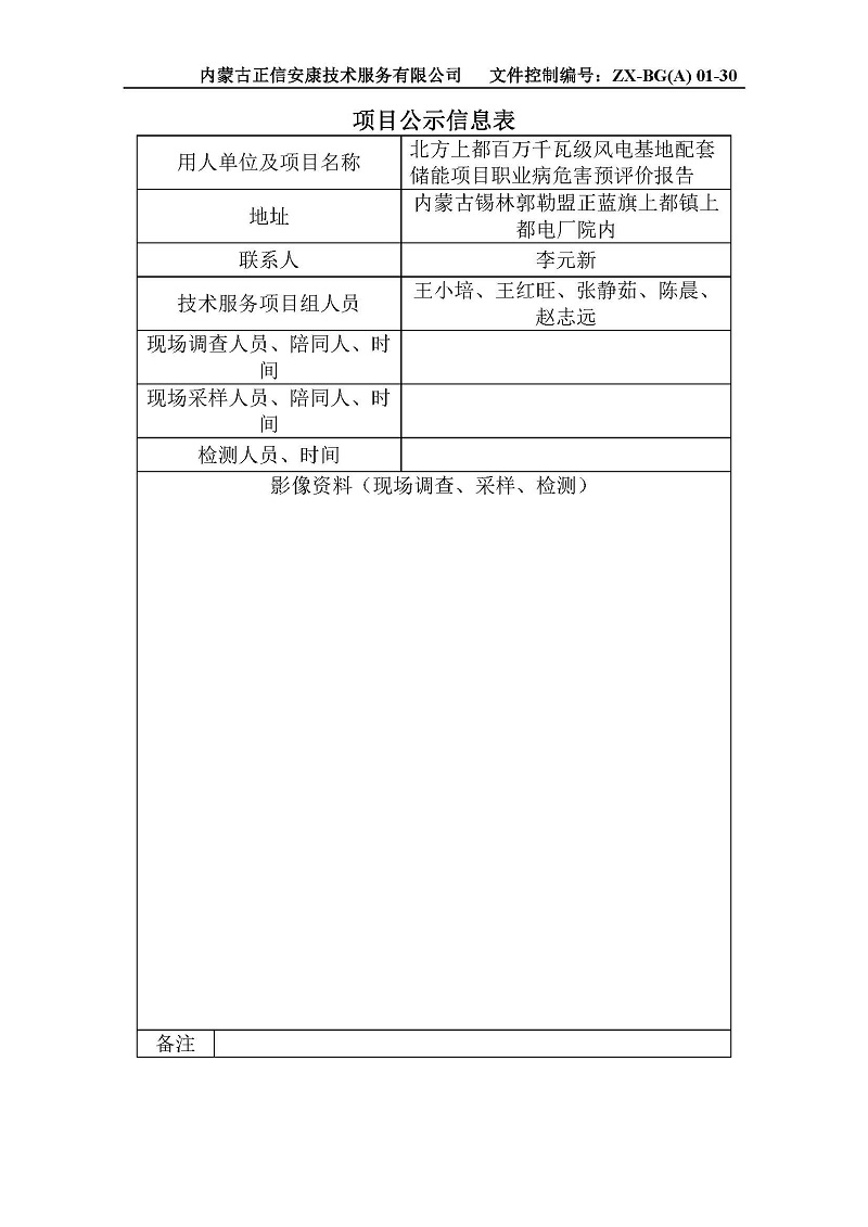 北方上都百萬(wàn)千瓦級風(fēng)電基地配套儲能項目職業(yè)病危害預評價(jià)報告公示信息表