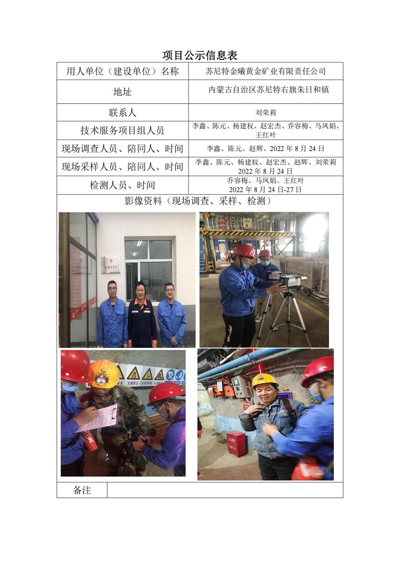 蘇尼特金曦黃金礦業(yè)有限公司白音哈爾礦職業(yè)衛生定期檢測