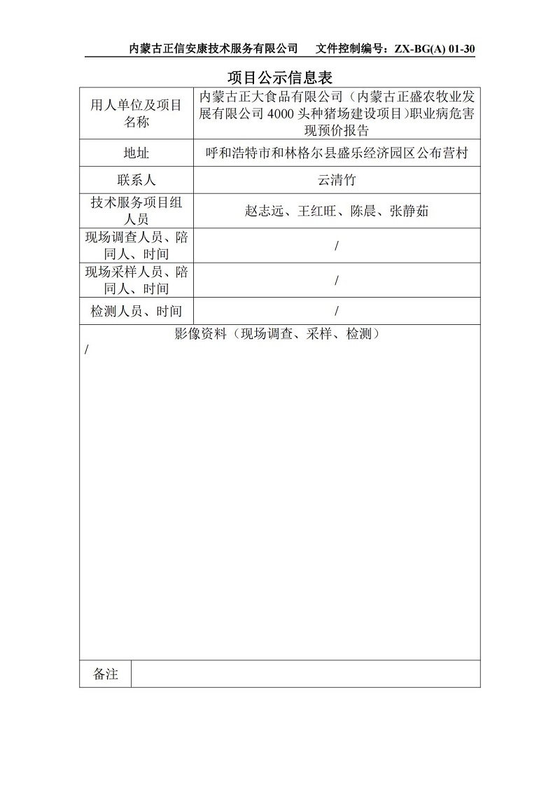 內蒙古正大食品有限公司(內蒙古正盛農牧業(yè)發(fā)展有限公司4000頭種豬場(chǎng)建設項目)預評-項目公示信息表