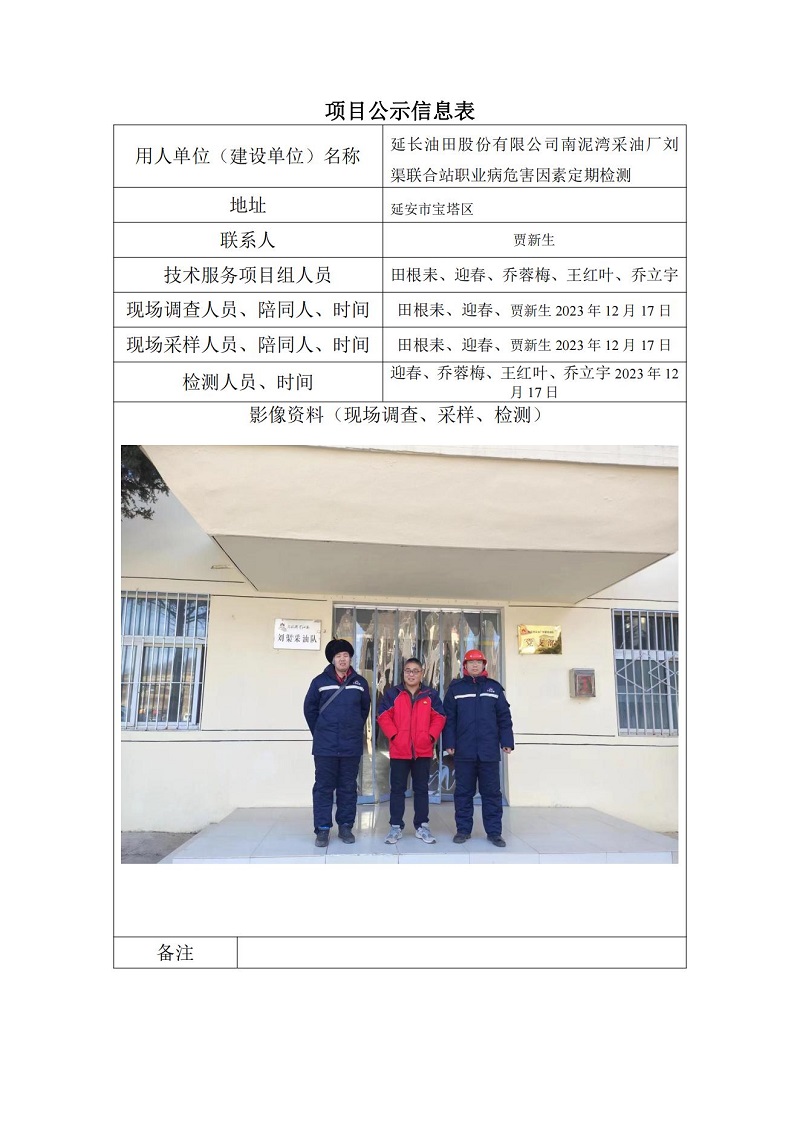 延長(cháng)油田股份有限公司南泥灣采油廠(chǎng)劉渠聯(lián)合站職業(yè)病危害因素定期檢測_