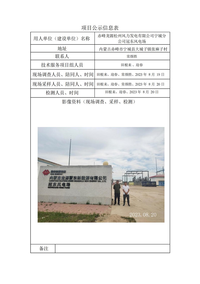 赤峰龍源松州風(fēng)力發(fā)電有限公司寧城分公司冠東風(fēng)電場(chǎng)