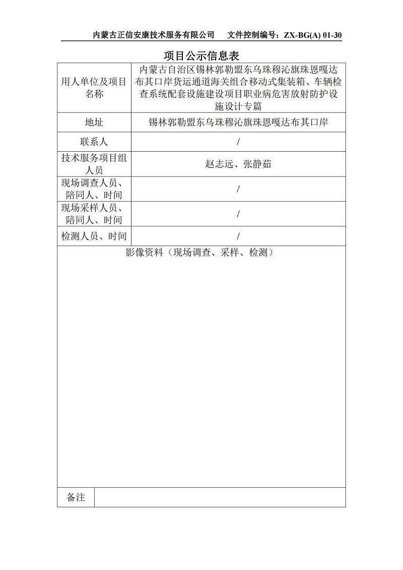 內蒙古自治區錫林郭勒盟東烏珠穆沁旗珠恩嘎達布其口岸貨運通道海關(guān)組合移動(dòng)式集裝箱、車(chē)輛檢查系統配套設施建設項目職業(yè)病危害放射防護預評價(jià)報告-項目公示信息表