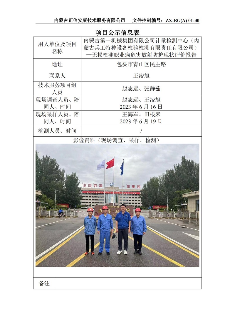 內蒙古第一機械集團有限公司計量檢測中心(內蒙古兵工特種設備檢驗檢測有限責任有限公司)—無(wú)損檢測間職業(yè)病危害放射防護現狀評價(jià)報告-項目公示信息表