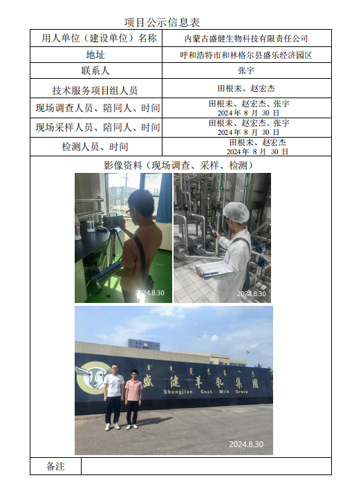 內蒙古盛健生物科技有限責任公司定期檢測