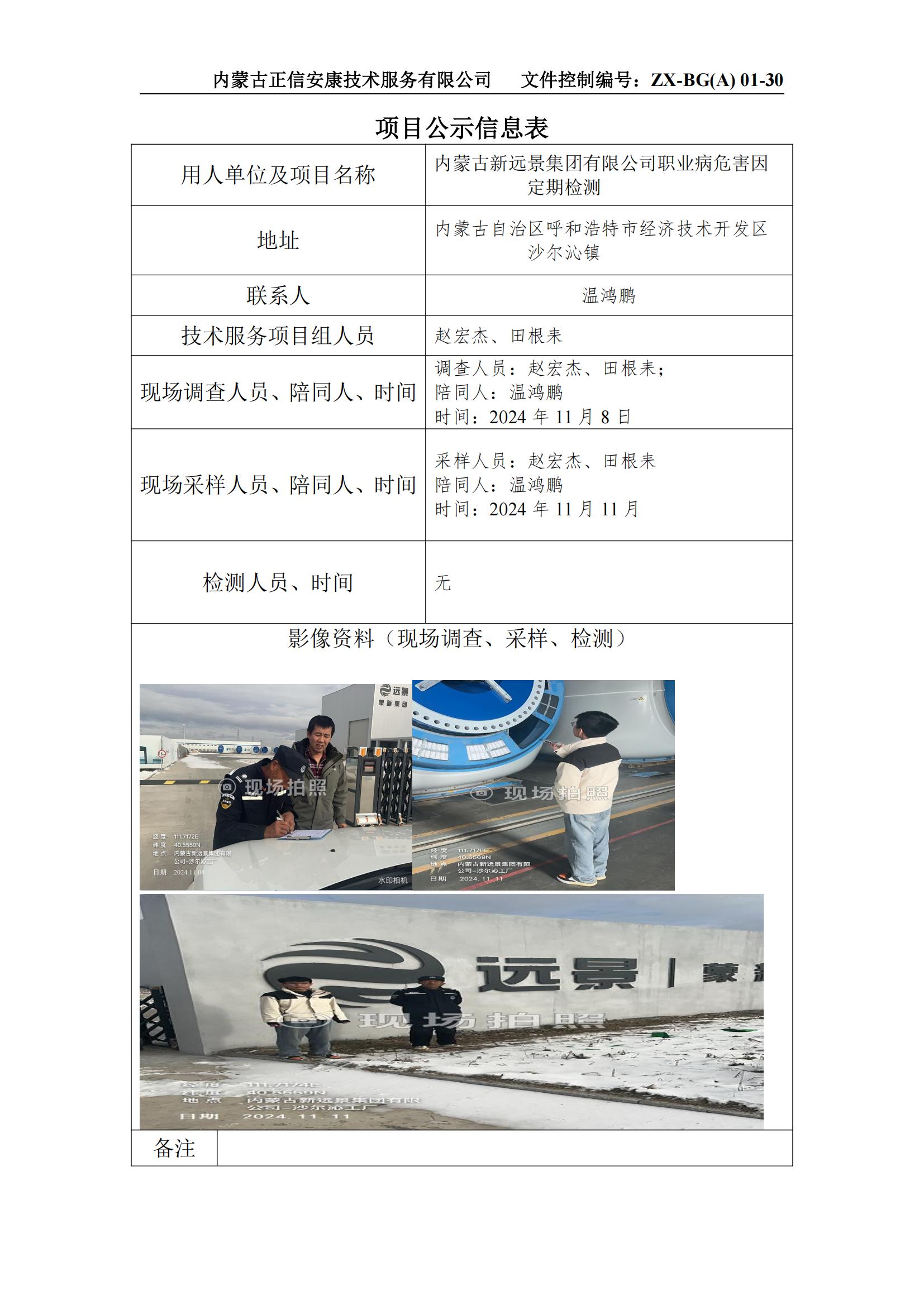 內蒙古新遠景集團有限公司職業(yè)病危害因定期檢測