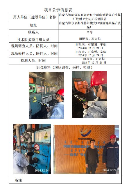 內蒙古智能煤炭有限責任公司麻地梁煤礦洗煤廠(chǎng)放射衛生防護檢測報告