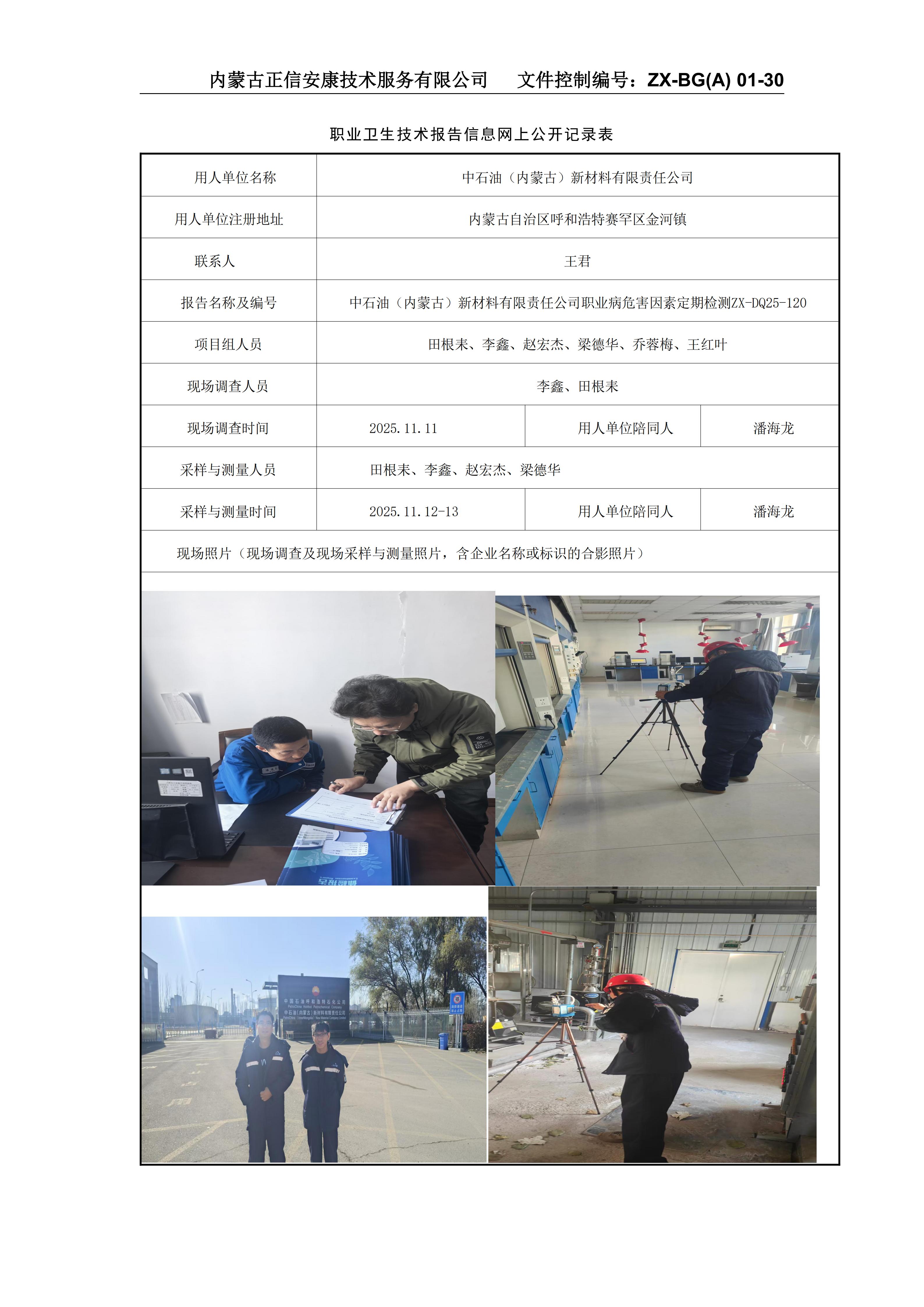 中石油(內(nèi)蒙古)新材料有限責任公司職業(yè)病危害因素定期檢測